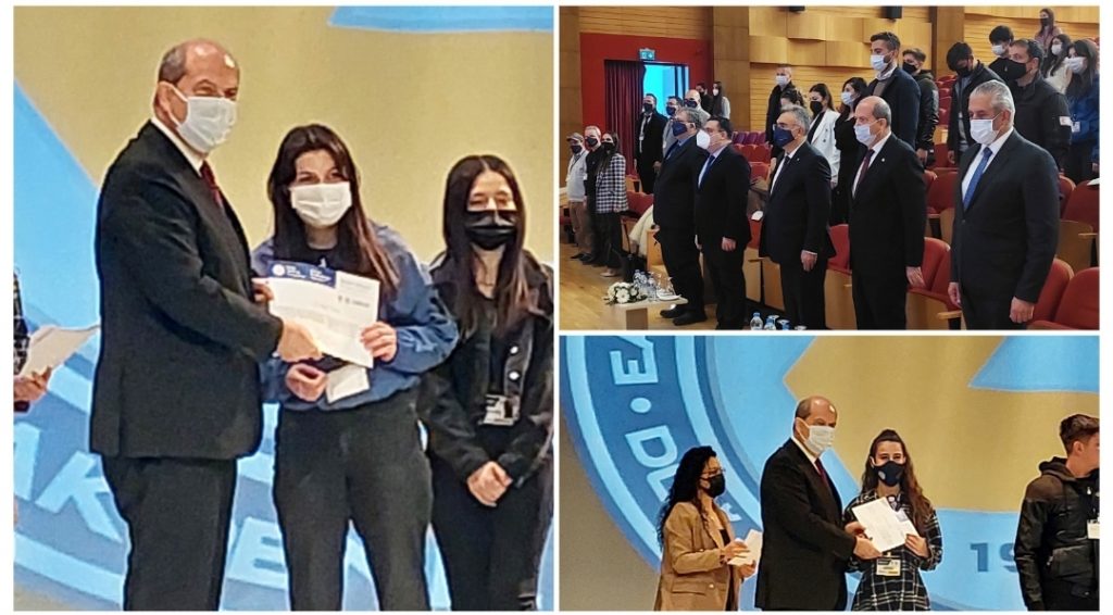 Cumhurbaşkanı Ersin Tatar ise yaptığı konuşmada, öğrencilerin teknoloji çağında, ambargo ve izolasyon gibi engelleri yıkarak proje üretüp gerçeğe dönüştürmesinin önemine değindi.