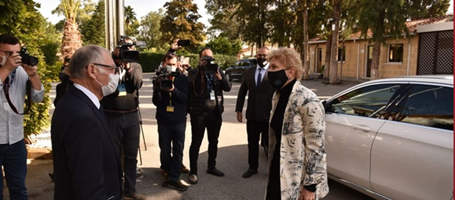 Ersin Tatar Cumhurbaşkanı olarak ilk kez Birleşmiş Milletler Genel Sekreteri Antonio Guterres tarafından Kıbrıs sorunu için görevlendirilen Jane Holl Lute’u kabul etti.