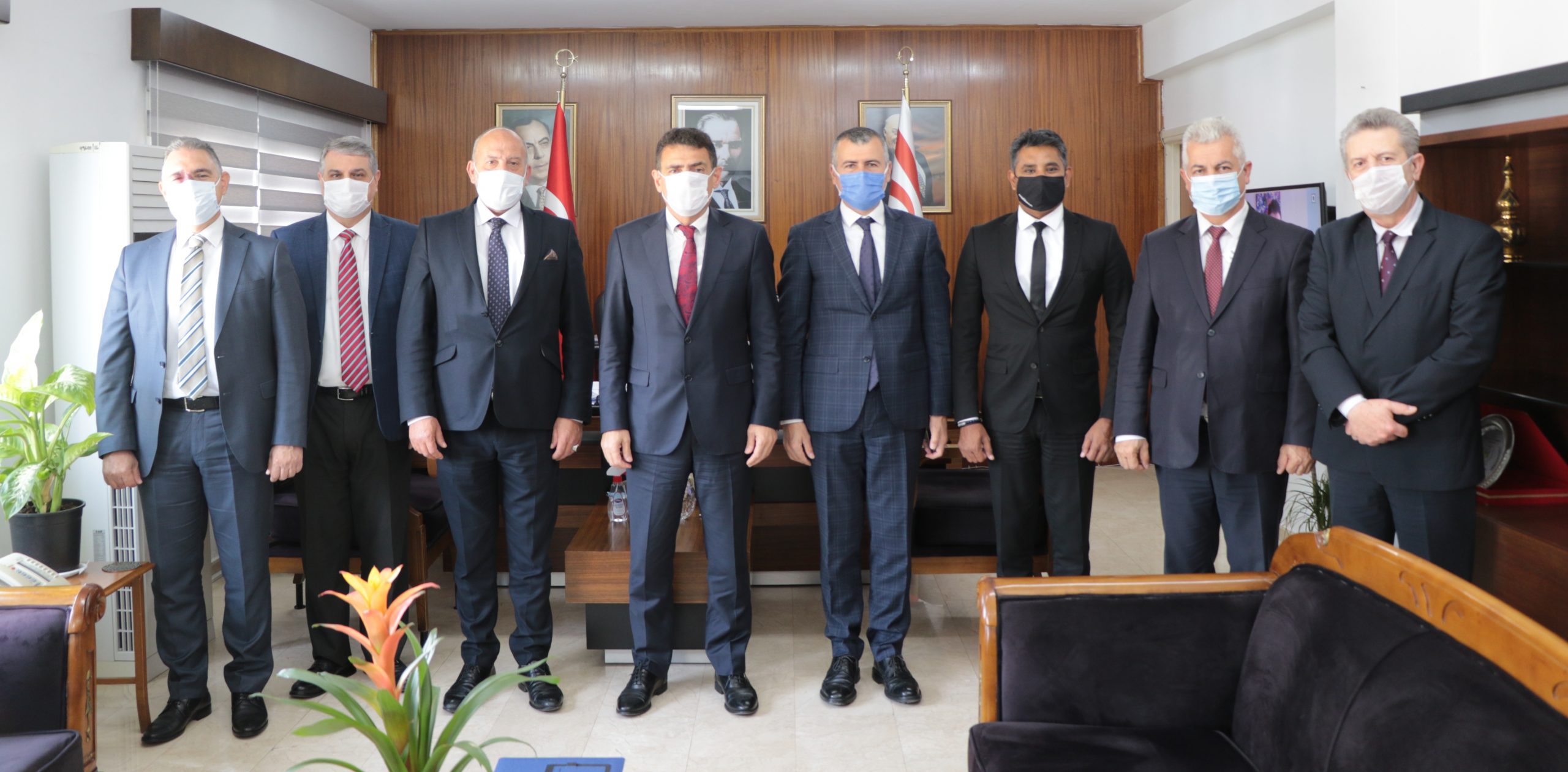 Maliye Bakanı Dursun Oğuz, Kuzey Kıbrıs Bankalar Birliği Başkanı Olgun Önal ve yönetim kurulu üyelerini kabul etti.