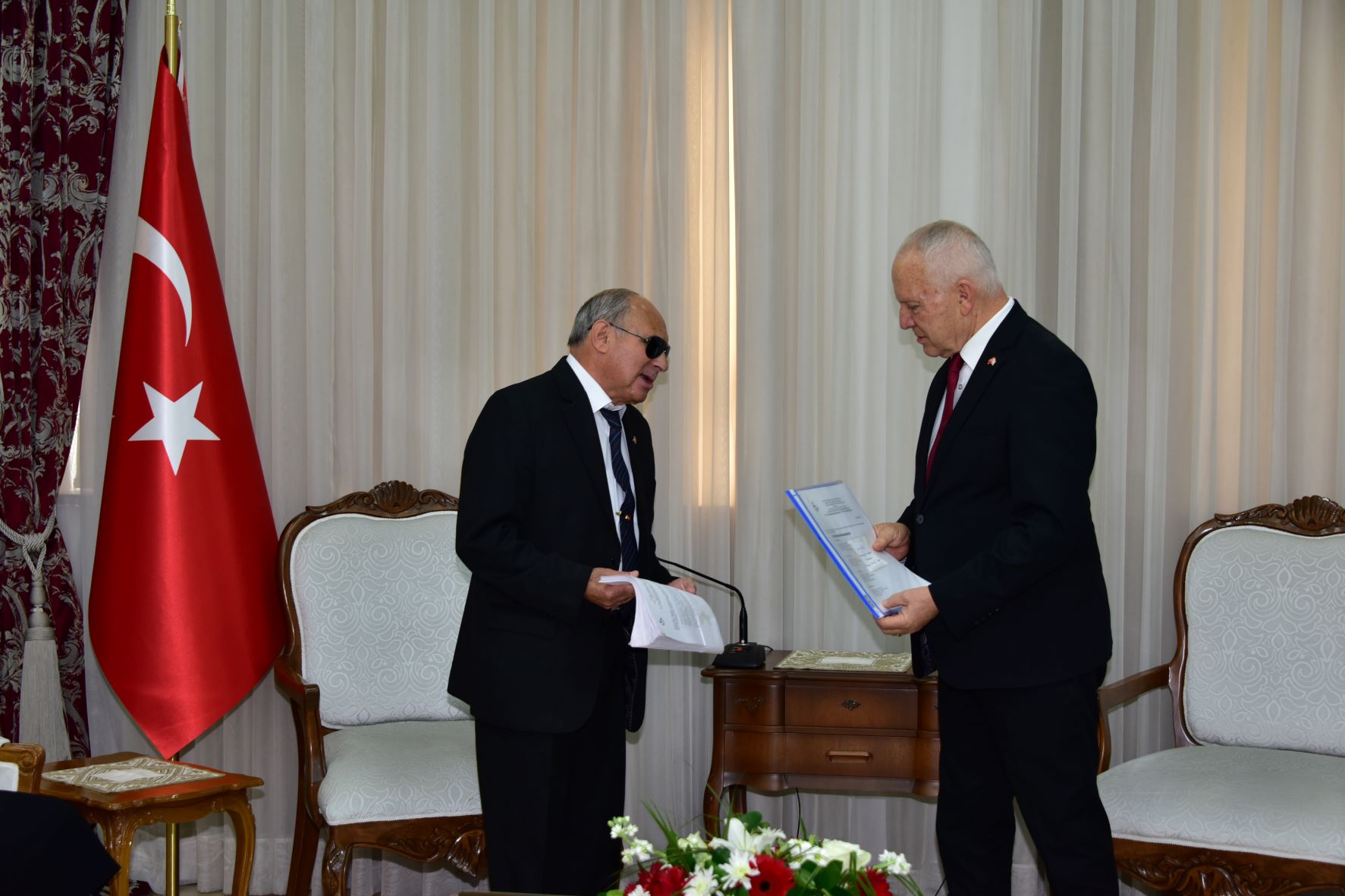 Kabulün tamamlanmasının ardından Töre, Yücetürk’e Kurucu Cumhurbaşkanı Rauf Raif Denktaş’ın portresini takdim etti.