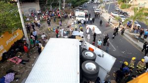 Eyalet Savcılığından yapılan açıklamada, ülkenin Chiapas eyaletinde, düzensiz göçmenleri taşıdığı belirtilen tırın otoyolun kenarındaki istinat duvarına çaparak devrildiği belirtildi.