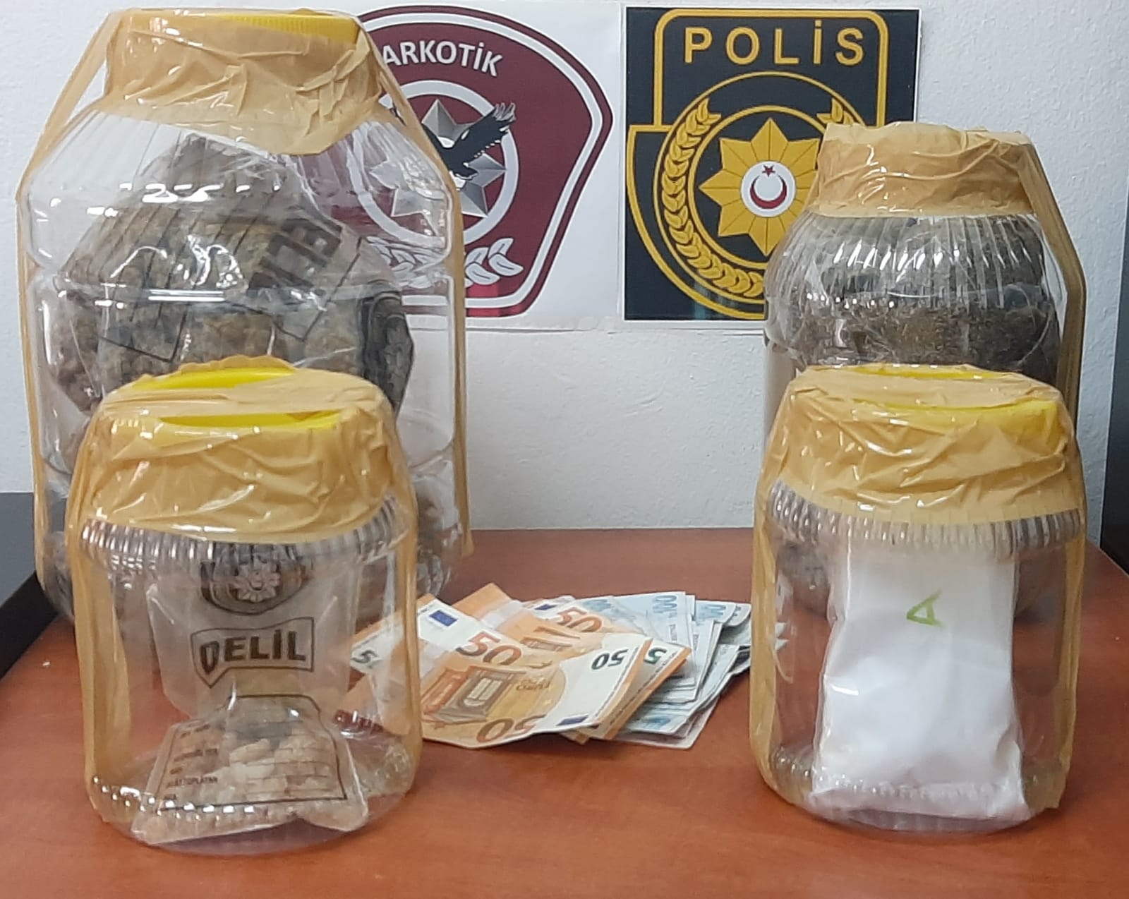 Akabinde bahse konu şahsın park halinde bulunan aracında yapılan aramada yaklaşık 400 gram ağırlığında hintkeneviri türü uyuşturucu olduğuna inanılan madde, yaklaşık 75 gram ağırlığında Methamphetamine türü uyuşturucu olduğuna inanılan madde, yaklaşık 285 gram ağırlığında Kokain türü uyuşturucu olduğuna inanılan madde ve uyuşturucu satışından elde edildiğine inanılan toplam 2590TL ve 300 Euro nakit para bulunarak emare olarak alınmıştır. Bahse konu şahıs tutuklanmış olup polisin olayla ilgili soruşturması devam etmektedir.