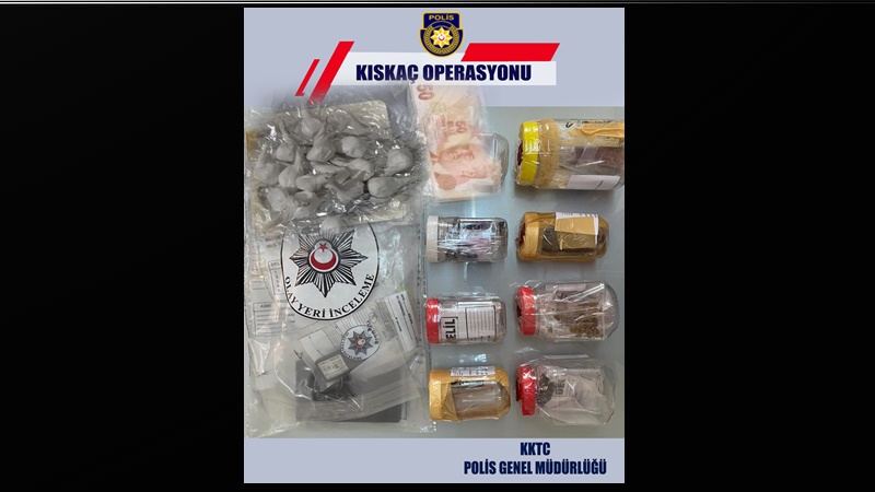 Polis basın bülteninde yer alan bilgiye göre dün saat 11.00 sıralarında, Narkotik ve Kaçakçılığı Önleme Müdürlüğü ekipleri tarafından Lefkoşa ve Girne’de gerçekleştirilen Kıskaç Operasyonu kapsamında; satışa hazır paketler haline getirilmiş yaklaşık 25 gram ağırlığında kokain, yaklaşık 13 gram ağırlığında Hint keneviri türü uyuşturucu olduğuna inanılan madde, içinde tütünle karışık uyuşturucu madde olduğuna inanılan ucu yanık bir sarma sigara, üzerinde uyuşturucu madde kalıntısı olduğuna inanılan iki öğütücü, iki hassas terazi ele geçirildi.