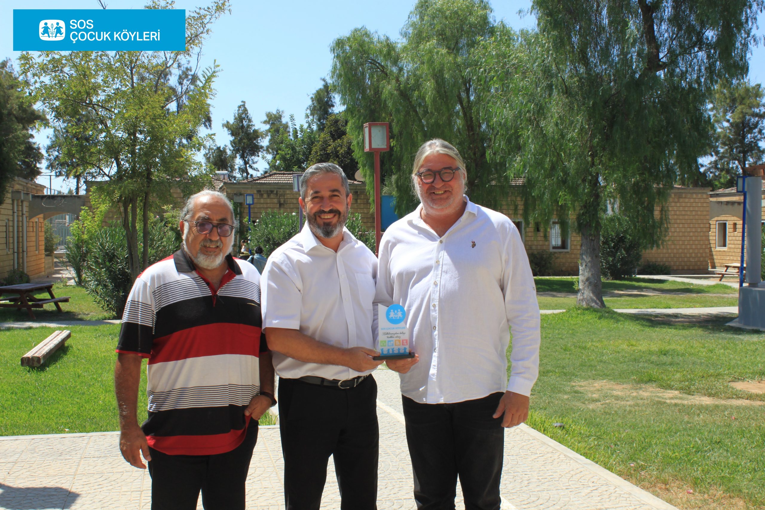 SOS Çocukköyü Derneği Yönetim Kurulu Başkanı Buğra Akter ve Çocukköyü Program Müdürü Ahmet Akarsu’nun ev sahipliğinde Lefkoşa yerleşkesini ziyaret eden Necati Özkan Vakfı Mütevelli Heyeti Başkanı Necati Ahmet Özkan ile Vakıf yetkilisi Ertaç Hazer, SOS Çocukköyü Derneği çatısı altında bakım ve destek gören çocukların ve gençlerin ihtiyaçlarının karşılanmasına yönelik bağışta bulundu.