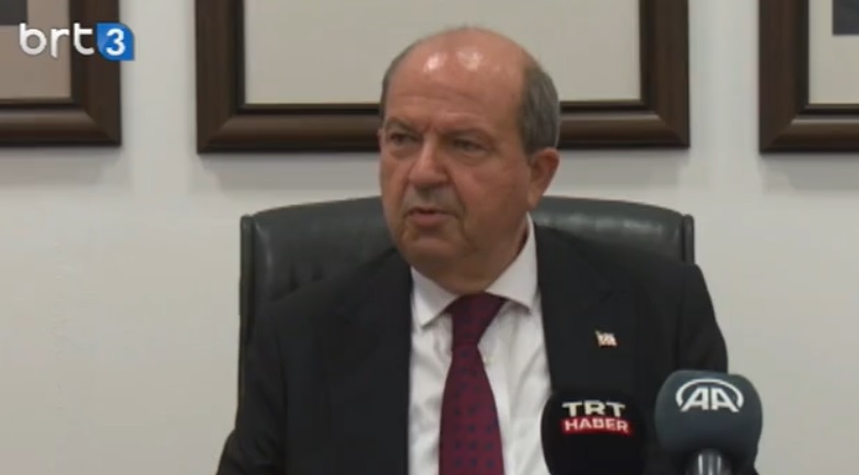 Cumhurbaşkanı Tatar, Ercan Havalimanı’nda basına temaslarıyla ilgili açıklamalarda bulunuyor.
