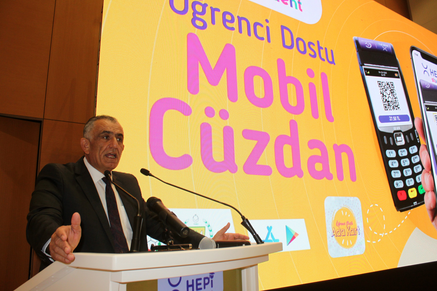 Çavuşoğlu’nun ardından Koop-Bank Genel Müdürü Kemal Ataman “Kıbrısın Mobil Cüzdanı” (Hepi) ve “Öğrenci Dostu Mobil Cüzdan”la (Hepi-Student – Ada Kart) ilgili bilgi verdi.