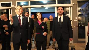 Oktay was accompanied by Turkish Ambassador to Lefkoşa Ali Murat Başçeri on his arrival at Bayrak Radio Television Corporation.