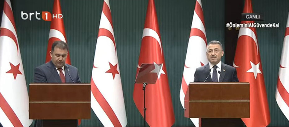 Başbakan Ersan Saner ile Türkiye Cumhurbaşkanı Yardımcısı Fuat Oktay, Türkiye-KKTC “2021 İktisadi ve Mali İşbirliği Anlaşması” ile ilgili ortak basın toplantısı düzenledi.