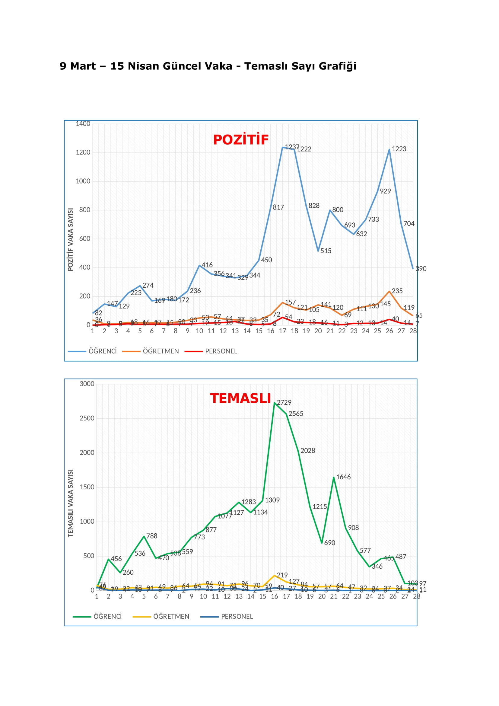 Buna göre, 26 Mart-1 Nisan arasında 390 öğrenci, 65 öğretmen ve 7 personelin Koronavirüs testi pozitif çıktı.