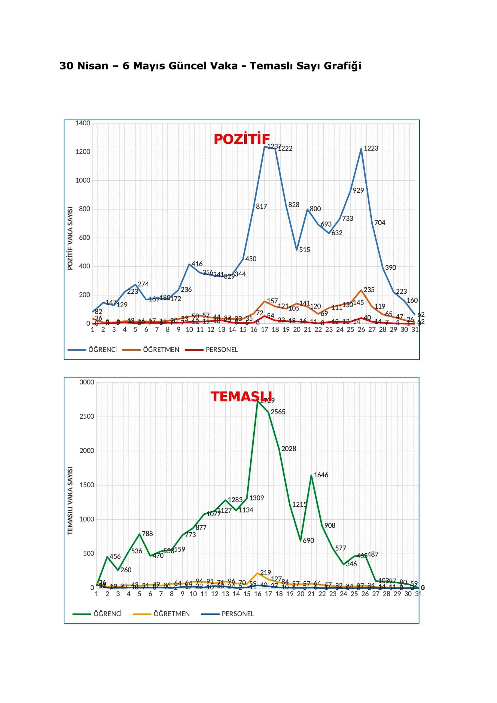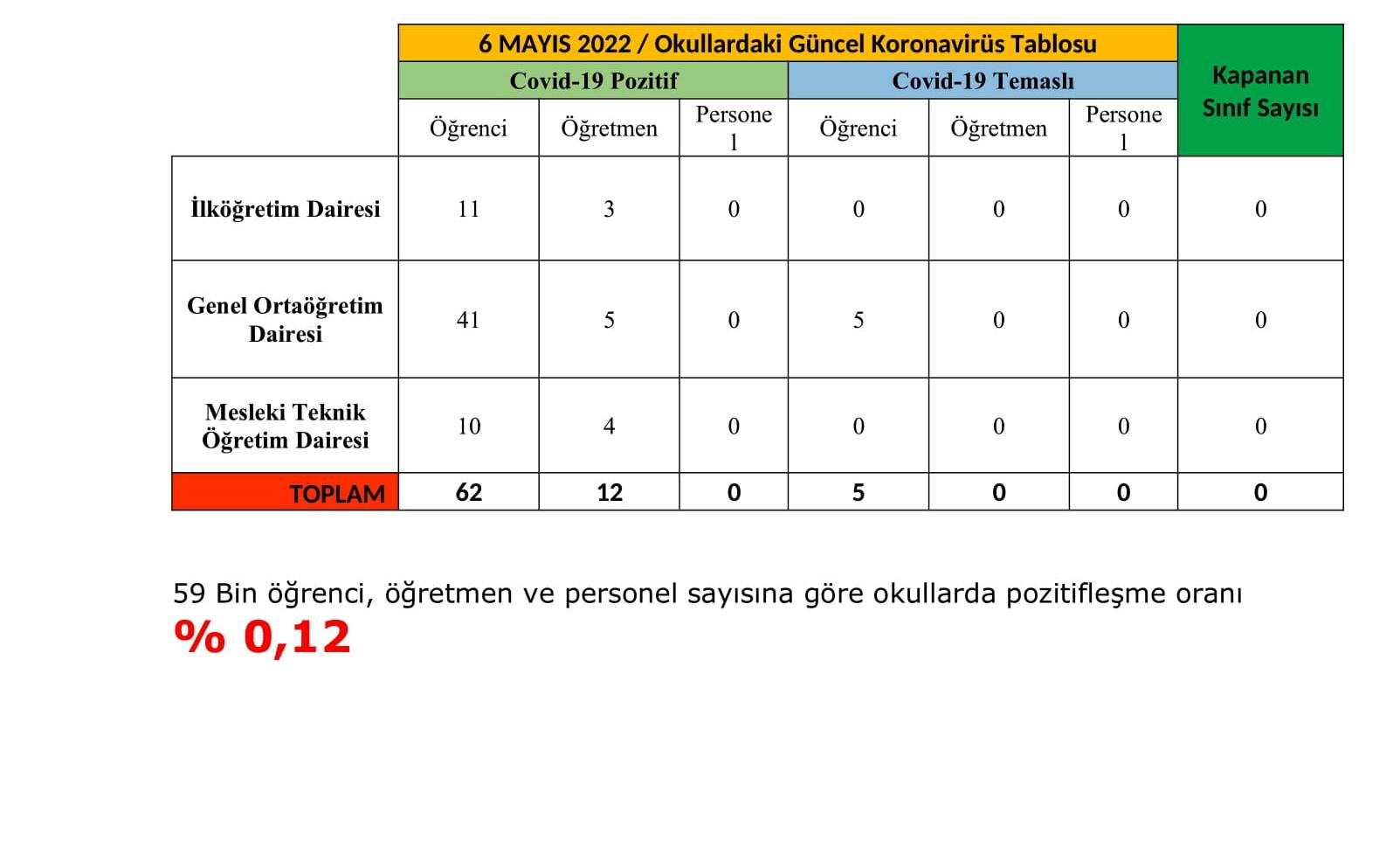 Açıklamaya göre, İlköğretim Dairesi’ne bağlı okullarda 11 öğrenci ve 2 öğretmen pozitif oldu; temaslı kategorisinde kimse yok…