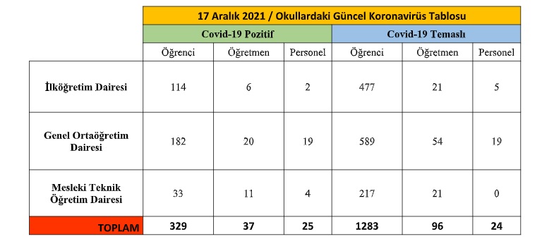Milli Eğitim ve Kültür Bakanlığı, okul idarelerinden gelen bilgiler doğrultusunda okullardaki güncel vaka sayılarını açıkladı.