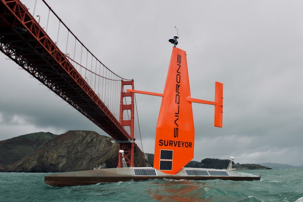 Geçen yıl 22 metrelik robot deniz aracı Saildrone Surveyor, San Francisco ve Honolulu arasında 28 günlük bir yolculukla, 22 bin kilometrekarelik deniz tabanının haritasını çıkardı.