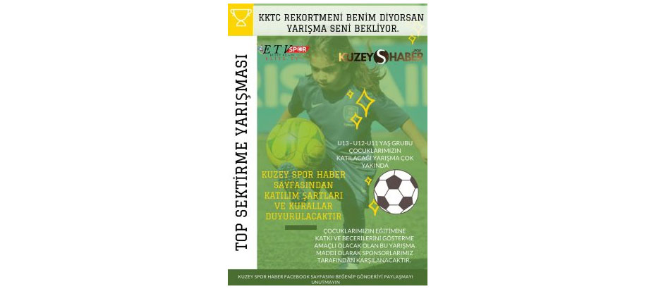 KKTC rekortmeni benim diyorsan yarışma seni bekliyor sloganı ile gerçekleştirilecek olan top sektirme yarışmasına U11, U12, U13 yaş grubu çocuklar katılabilecek..