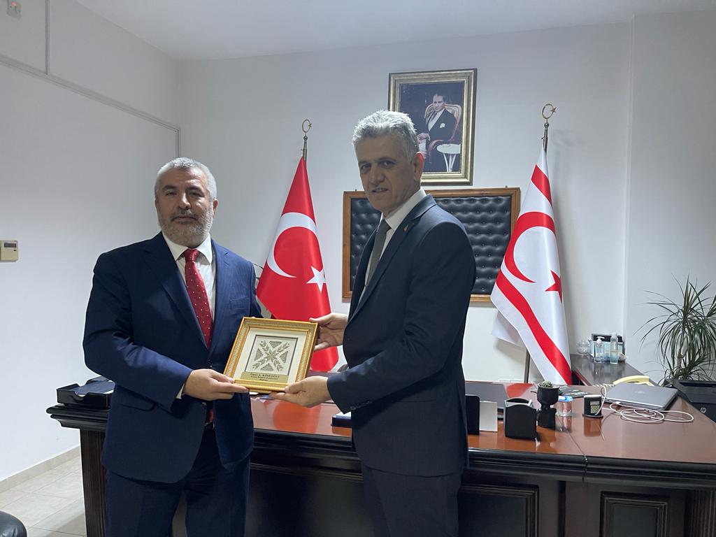 Birtakım ziyaretlerde bulunmak üzere KKTC’ye gelen ÖSYM (Ölçme, Seçme ve Yerleştirme Merkezi) Başkanı Prof. Dr. Bayram Ali Ersoy ve beraberindeki heyet Kamu Hizmeti Komisyonu (KHK) Başkanı Ömer Köseoğlu’nu makamında ziyaret etti.