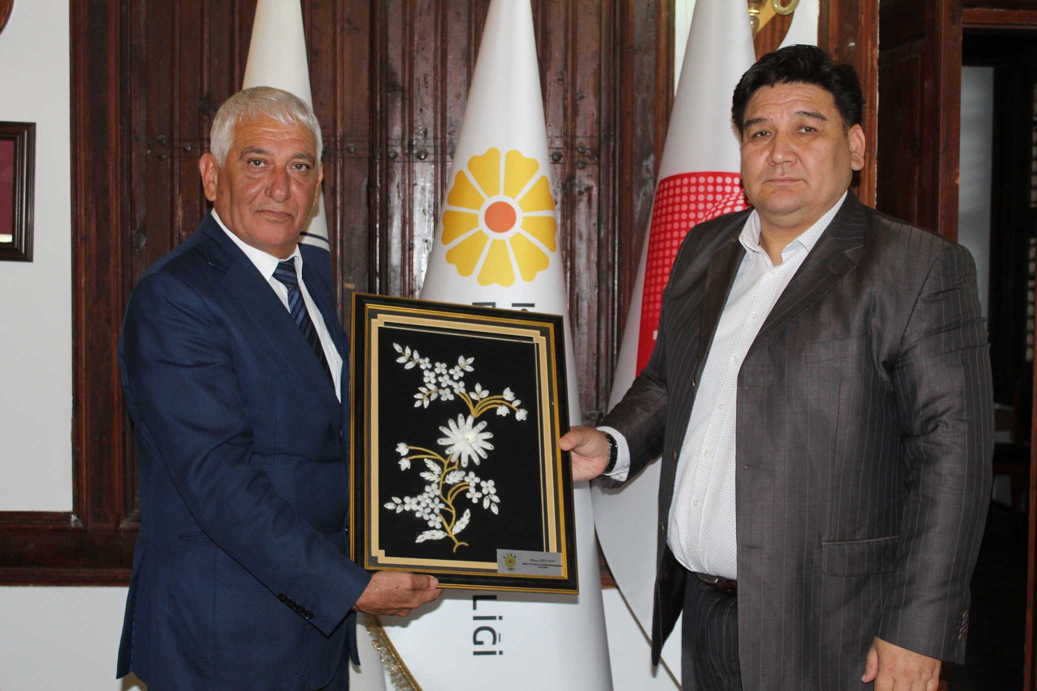 Utepov ayrıca, İdare Amiri Güneş ile Dış ilişkiler Sorumlusu Beydola’ya Kazakistan’ın geleneksel şapkası “takya” hediye etti. Özçınar da, Utepov’a ipek kozasından yapılmış el işi tablo taktim etti.