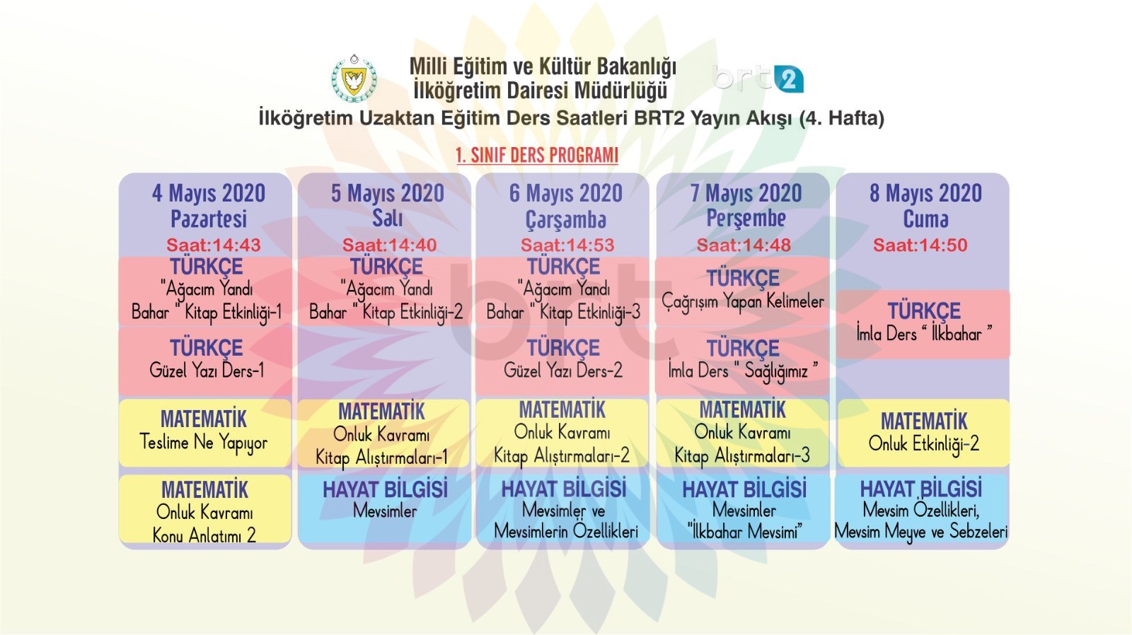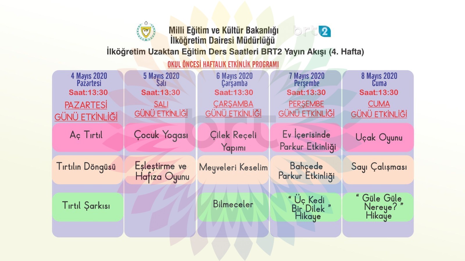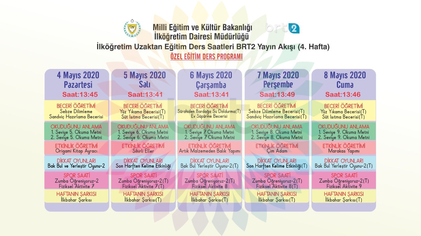 Özel Eğitim, Okul Öncesi, İlkokul 1-2-3-4-5 öğrencilerine uzaktan eğitim! İşte DERS PROGRAMI: