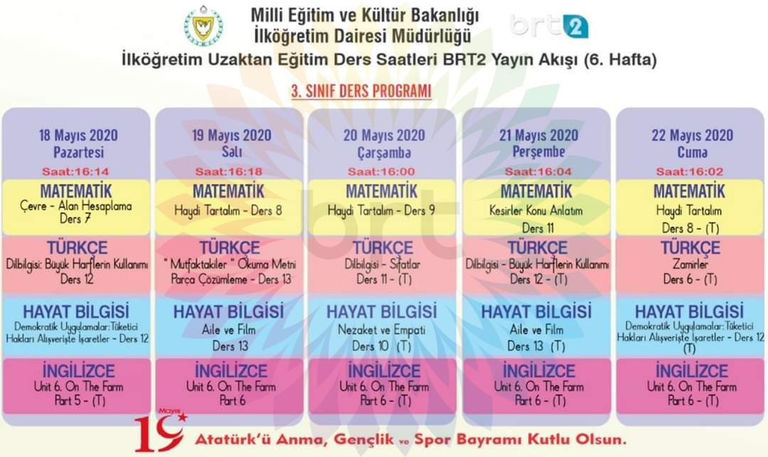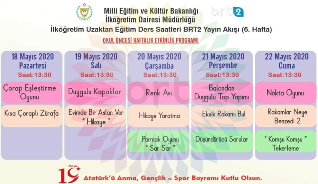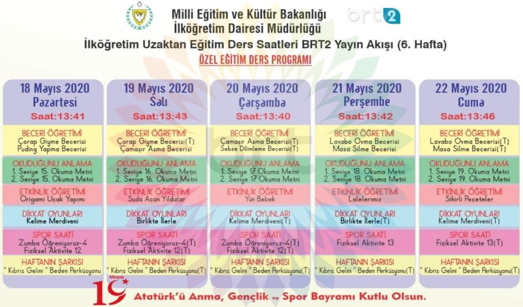 Özel Eğitim, Okul Öncesi, İlkokul 1-2-3-4-5 öğrencilerine uzaktan eğitim! İşte DERS PROGRAMI: