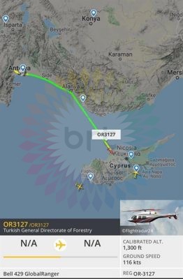 Başbakan Yardımcısı ve Dışişleri Bakanı Kudret Özersay sosyal medya hesabından yaptığı açıklamada üçüncü yangın söndürme helikopterin ulaştığını duyurdu