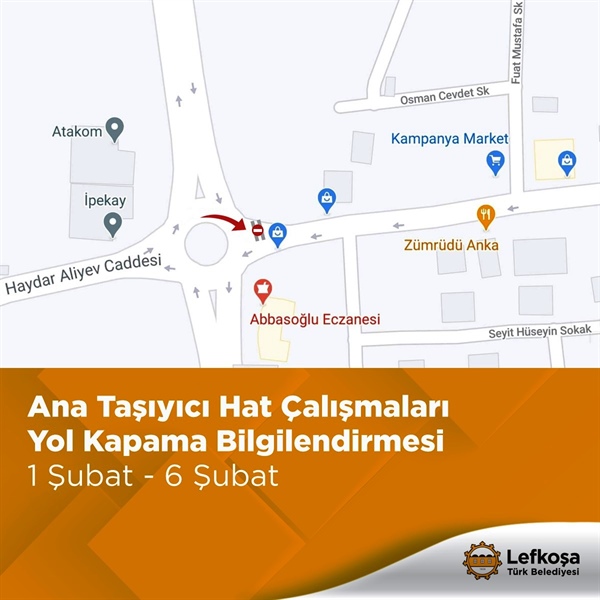 Küçük Kaymaklı Özker Özgür Caddesi’nde yapılacak kanalizasyon çalışmaları nedeniyle, güzergahın 1-6 Şubat arasında kısmı olarak trafiğe kapalı olacağı duyuruldu.