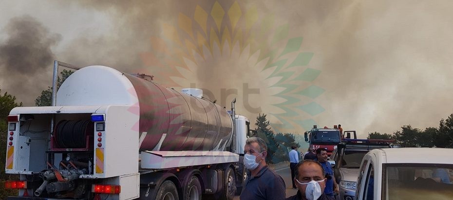 Havadan helikopterler, karadansa itfaiye araçları ve dozerlerle yangına müdahale sürüyor.