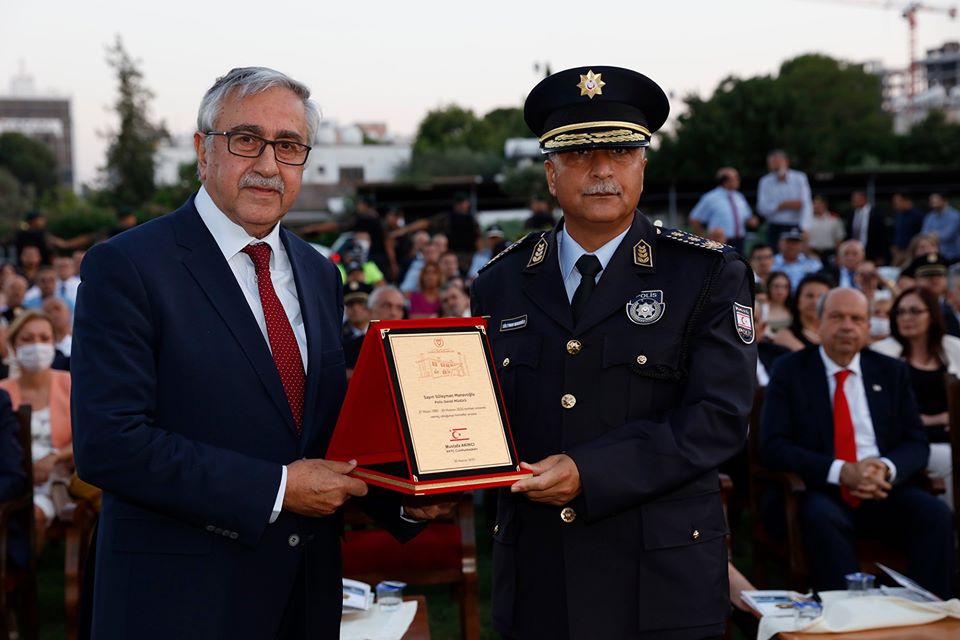 Süleyman Mavanoğlu ve Ahmet Soyalan’ın özgeçmişlerinin de okunduğu törende Cumhurbaşkanı Akıncı, polis genel müddürlüğü görevine atanan Ahmet Soyalan’a görev rütbesi taktı, görevi devreden Süleyman Manavoğlu’na ise hizmet anısı şildini takdim etti.