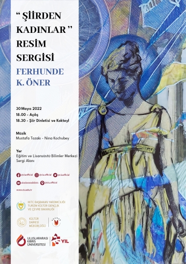 Başbakan Yardımcılığı, Turizm, Kültür, Gençlik ve Çevre Bakanlığı’na bağlı Kültür Dairesi, Uluslararası Kıbrıs Üniversitesi ile Uluslararası Kıbrıs Üniversitesi Kadın ve Toplumsal Cinsiyet Araştırmaları Merkezi (UKAMER) paydaşlığında, Ressam Ferhunde K. Öner’in “Şiirden Kadınlar” isimli resim sergisini açıyor.