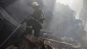 Rus güçlerinin sabah erken saatlerde Slavyansk’ta bir evi ve seramik fabrikasını vurmasının ardından ev ve fabrikada yangın çıktı.