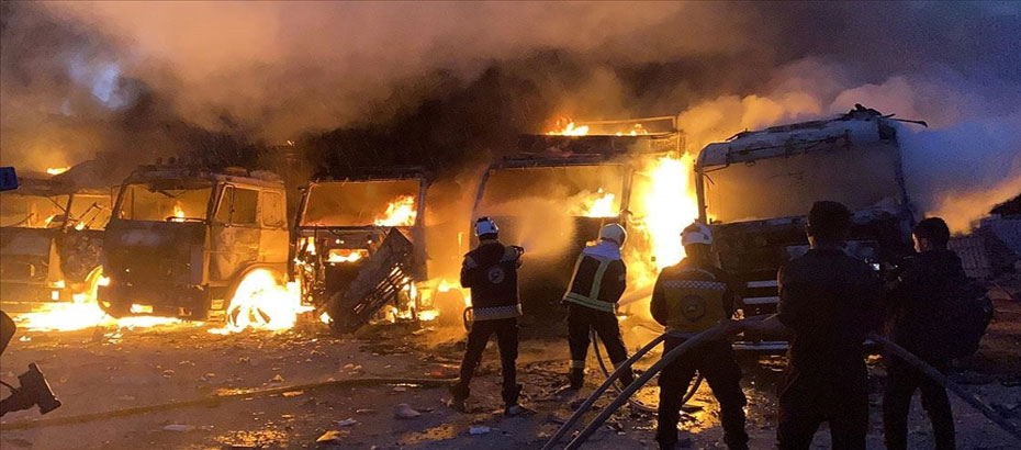 İdlib sivil savunma ekipleri saldırı sonrası arama ve yangın söndürme faaliyetlerini sürdürüyor.