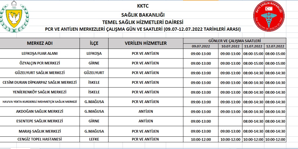 Sağlık Bakanlığı’ndan yapılan açıklamada Lefkoşa, Girne, Gazimağusa, Güzelyurt ve İskele’de 9 merkezin bayram boyunca hizmet vermeye devam edeceği bildirildi.