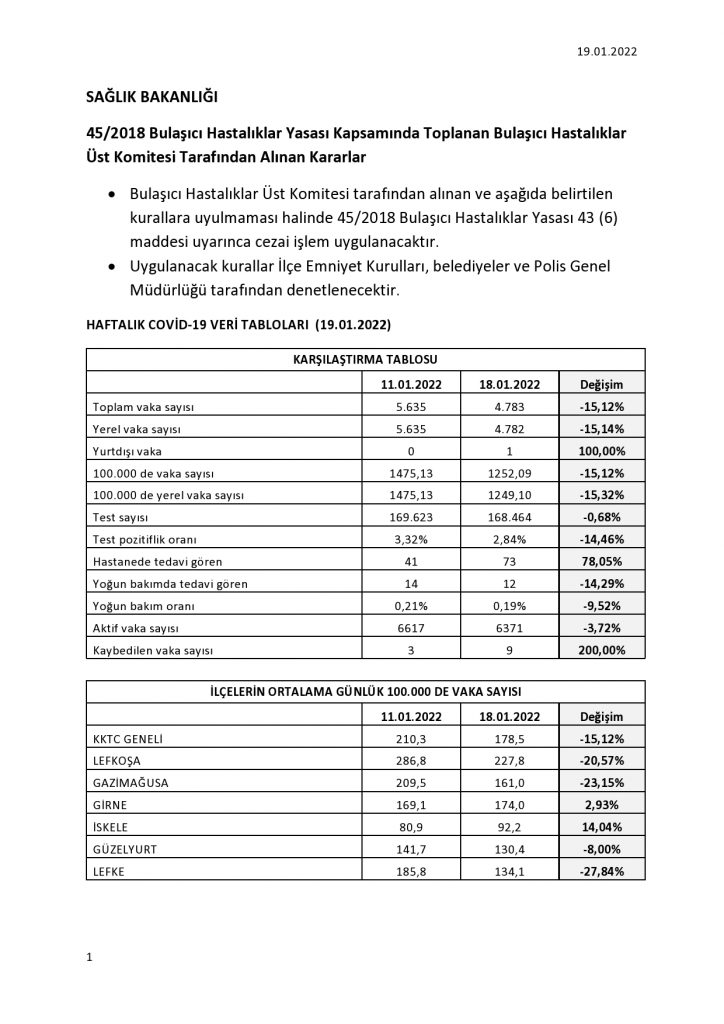 Bulaşıcı Hastalıklar Üst Kurulu yeni kararlarını açıkladı.