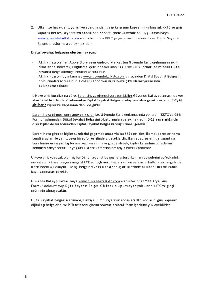 Gerekli sürede üçüncü dozu yapmadığı için aşıları geçersiz kabul edilecek kişilerle, hiç aşılanmamış kişiler ve 12 yaş üzerindeki kişilerin geçişlerde 72 saatlik PCR ya da 48 saatlik hızlı test ibraz etmesi gerekiyor.