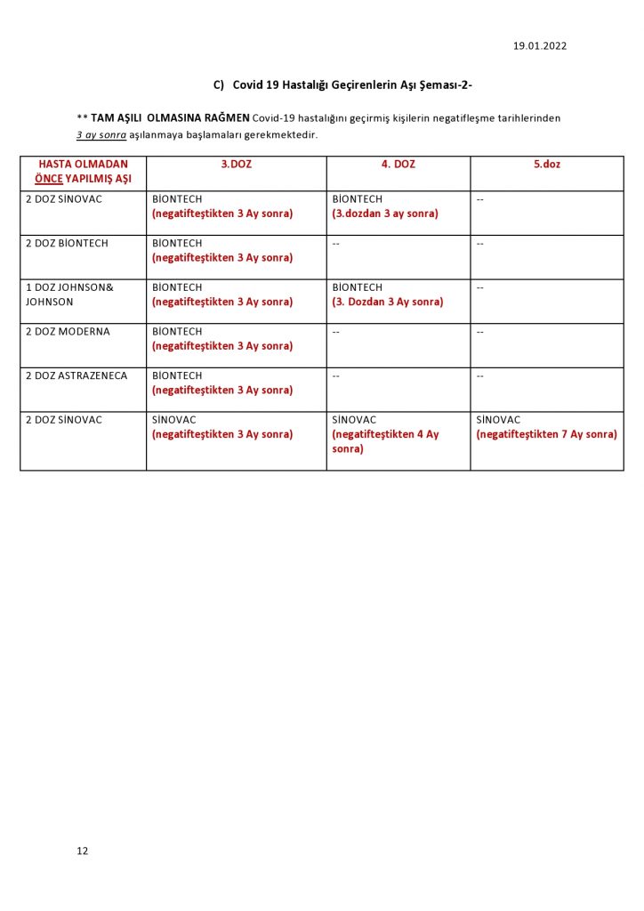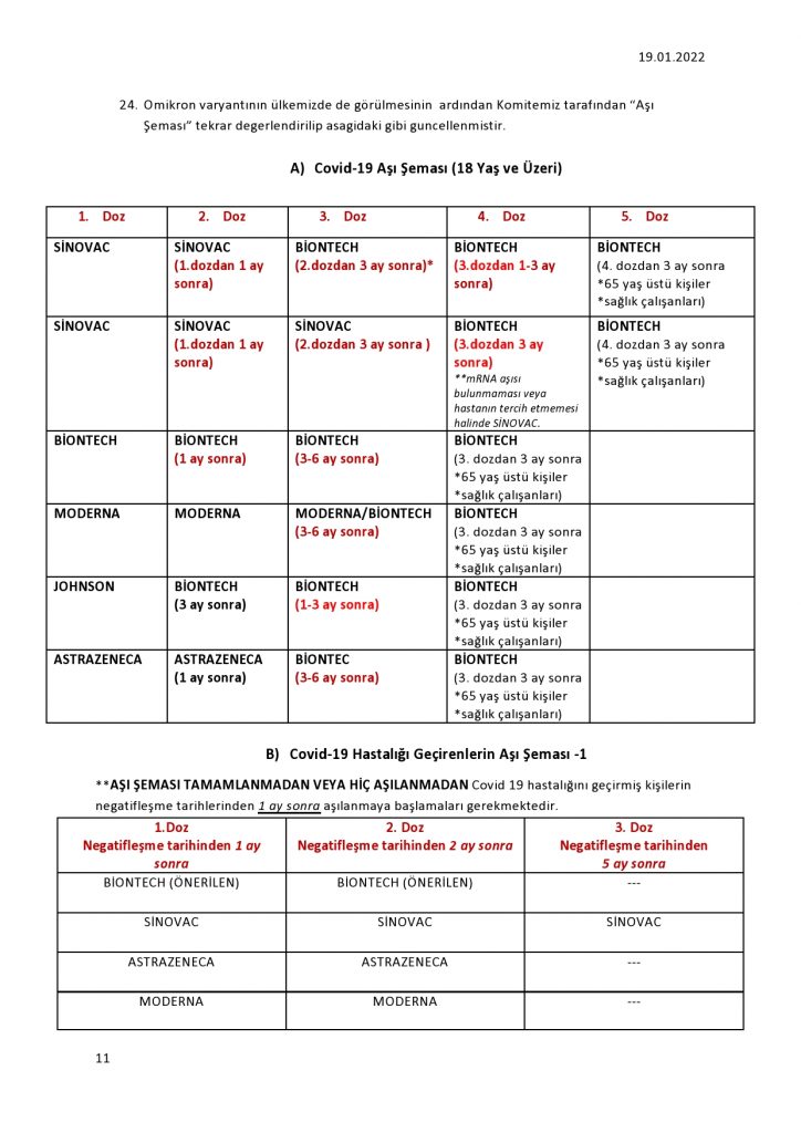 Astra Zeneca, Moderna ya da Pfizer-BioNTech aşısı olan kişilerin ikinci dozunun üzerinden 7 ay, Sinovac, Sinopharm, Sputnik ya da Johnson aşısı olan kişilerin ikinci dozunun üzerinden 3 ay geçmesi halinde 3. dozunu yapmamış kişilerin aşıları geçersiz kabul edilecek.