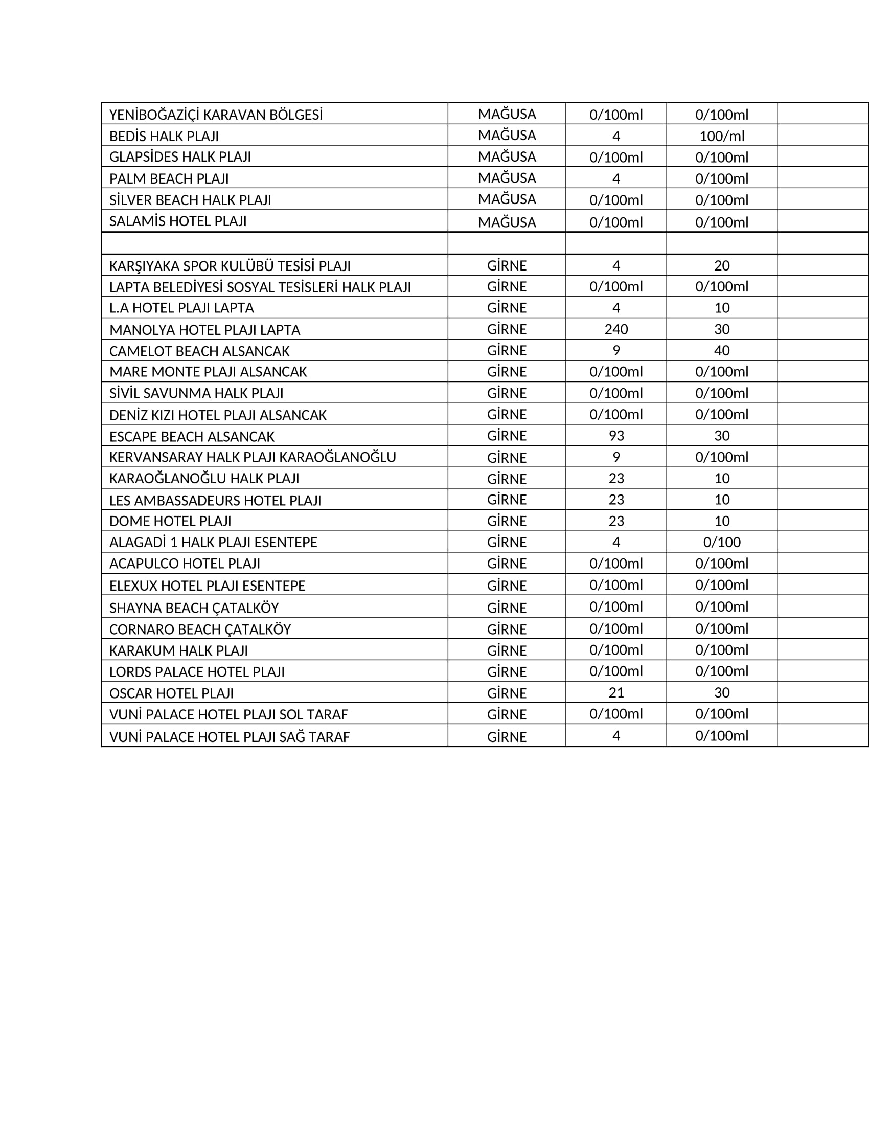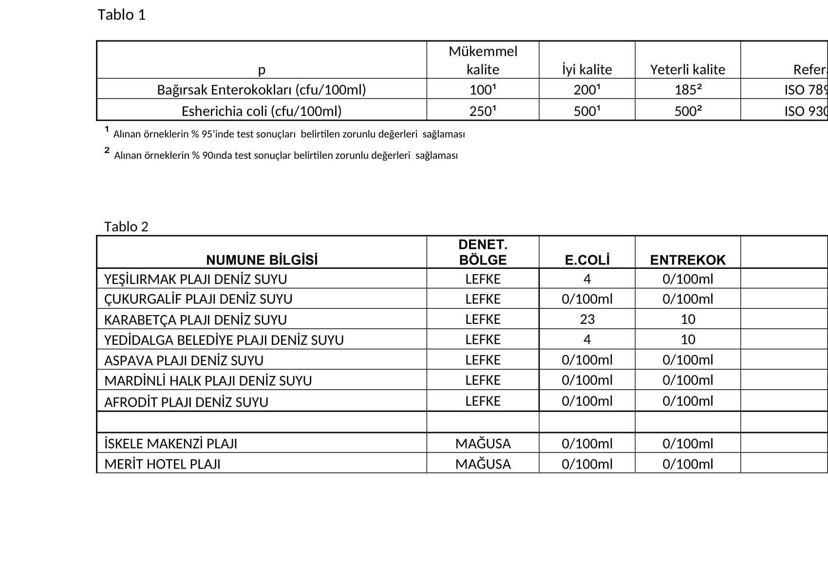 Bakanlık açıklamasında, Nisan ayında yaptırılan analiz sonuçlarında Kuzey Kıbrıs Türk Cumhuriyeti plajlarında herhangi bir olumsuz değere rastlanmadığı belirtildi.