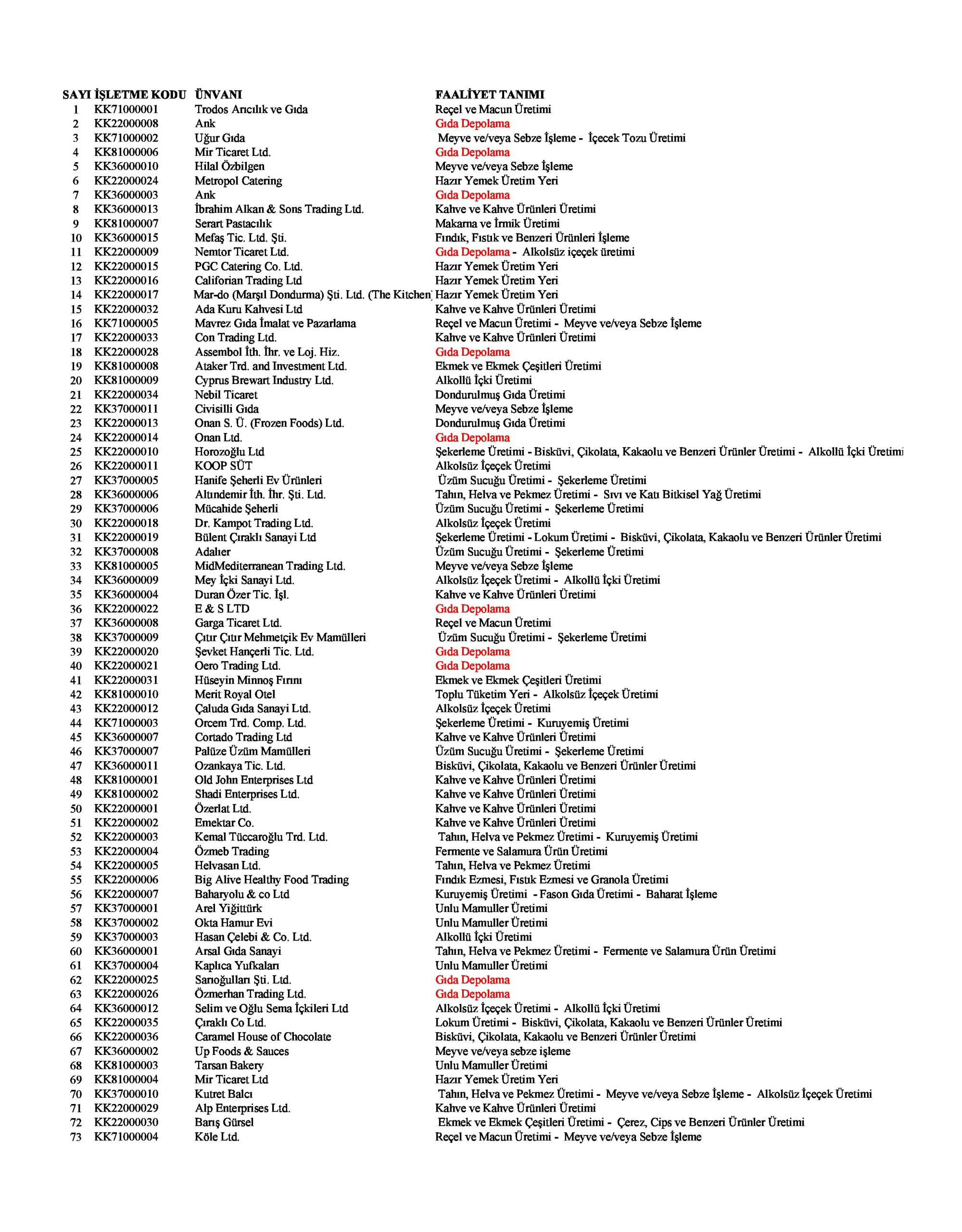 Açıklamada, 16 Kasım 2022 tarihine kadar Temel Sağlık Hizmetleri Dairesi tarafından kayıt altına alınan işletmelerin listesi de paylaşıldı.