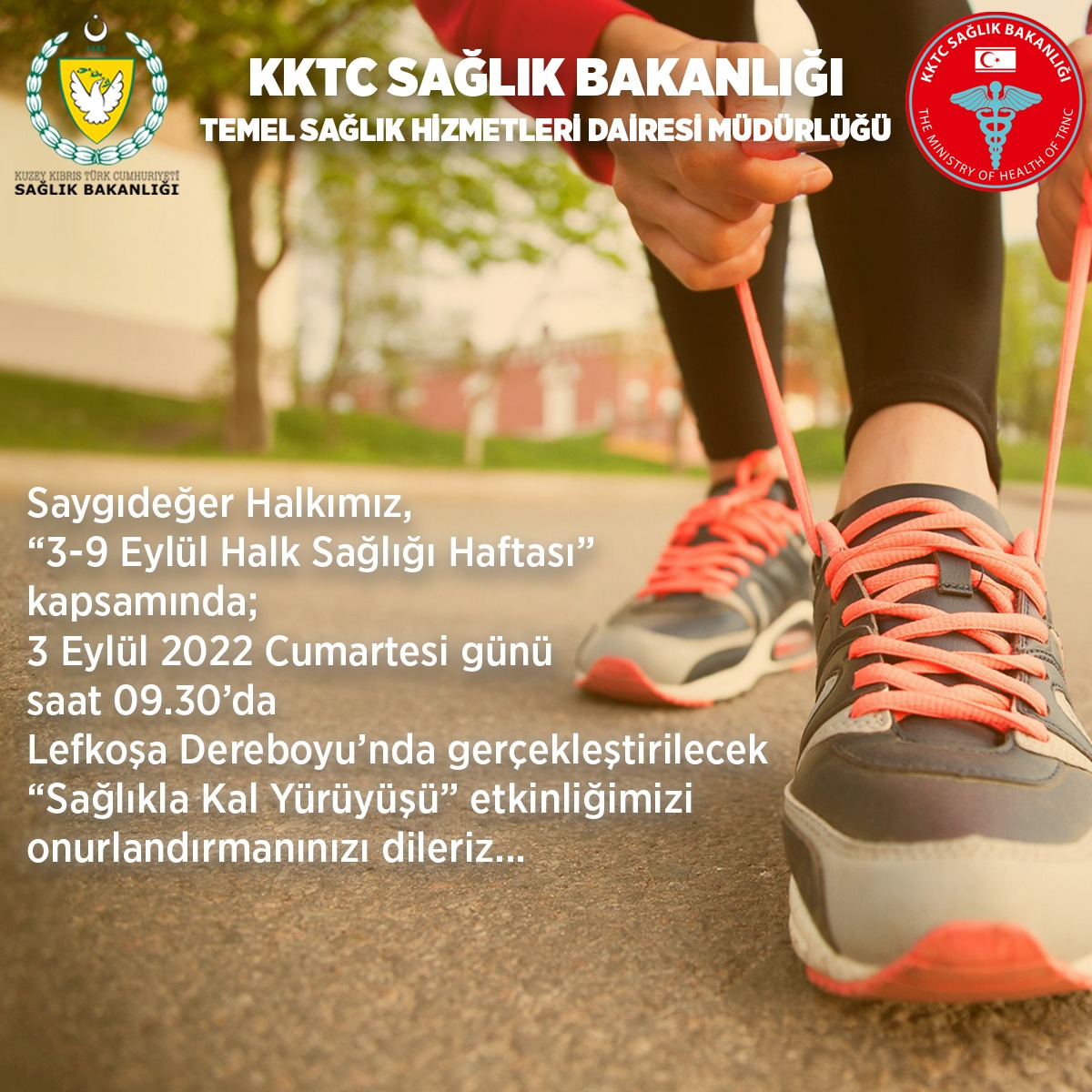 “Sağlıkla Kal Yürüyüşü” için yarın saat 09.00’da Dereboyu Avenue önünde buluşulacak. Yürüyüş, 09.30’da başlayacak, Pronto çemberi güzergâhı izlenerek Kuğulu Park’a ulaşılacak. Kuğulu Park’ta halk bilgilendirilecek; broşür dağıtılacak, çocuklar için el boyama etkinliği yapılacak.