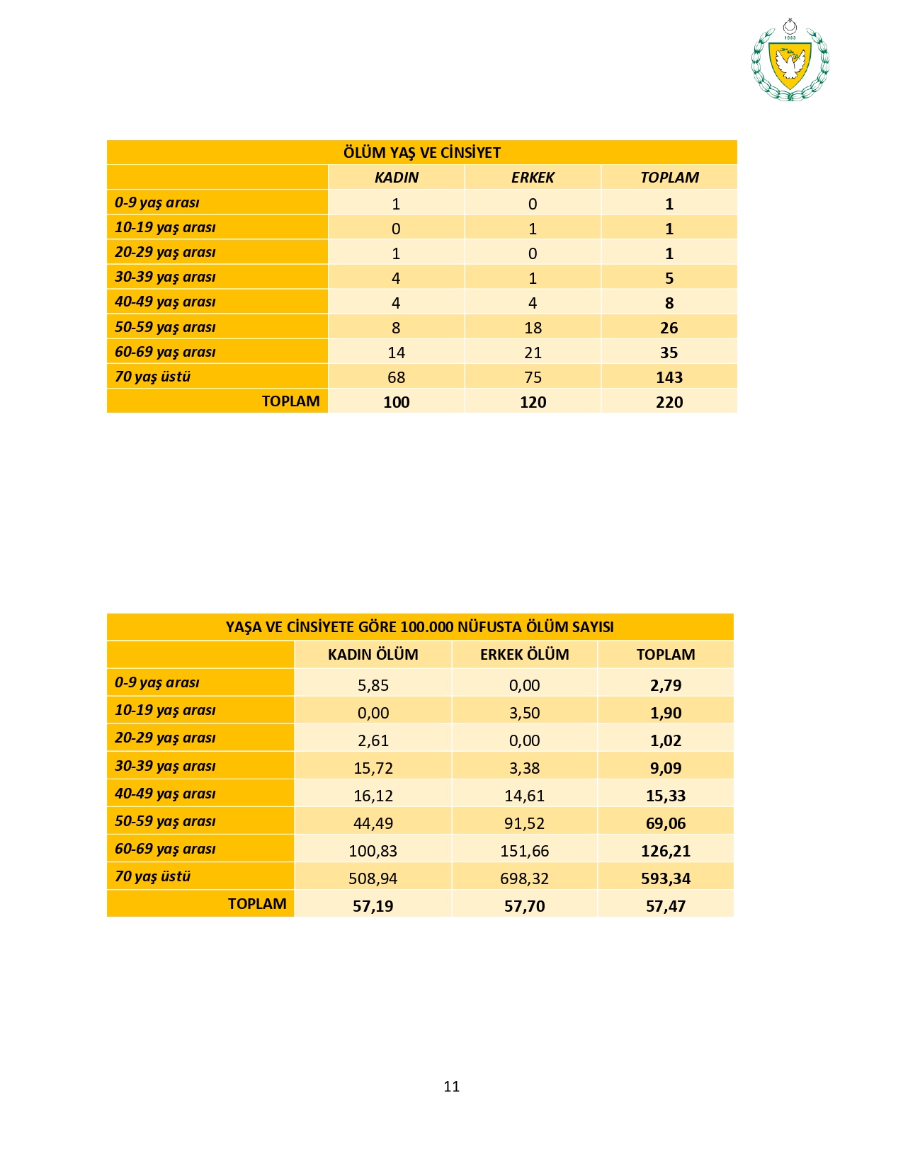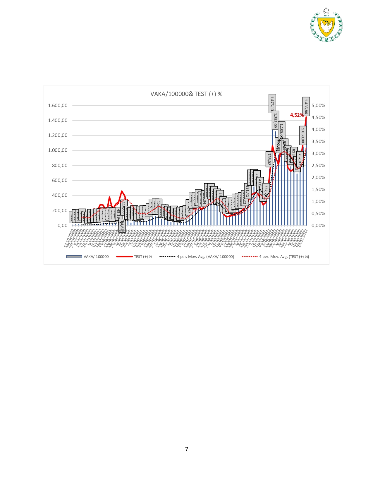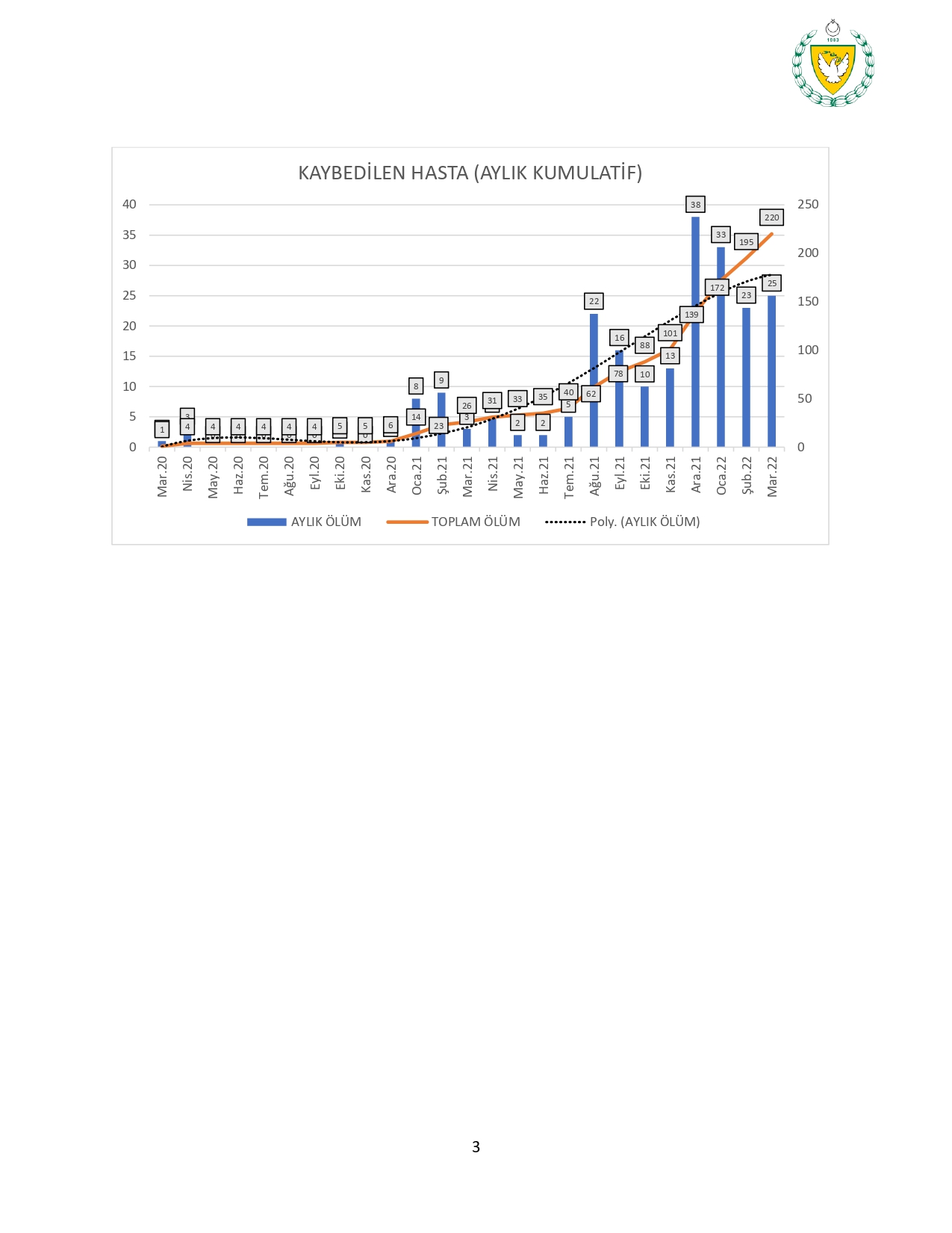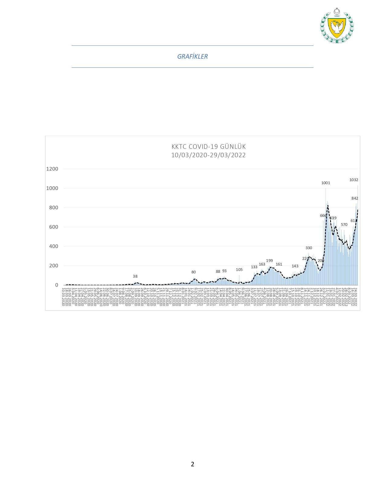 Rapora göre, 23 Mart ile 29 Mart tarihlerini kapsayan 7 günlük süreçte KKTC genelinde 5 bin 485 vaka tespit edildi, 10 kişi ise covid-19 nedeniyle hayatını kaybetti. 16 Mart ile 22 Mart tarihlerini kapsayan haftada 4 bin 11 olan toplam vaka sayısında %36.75; 5 olan kaybedilen vaka sayısında ise %100 oranında artış gözlemlendi. Rapora göre, bir haftada yaşları 63 ile 107 arasında değişen 6 erkek ile 4 kadın hasta hayatını kaybetti.