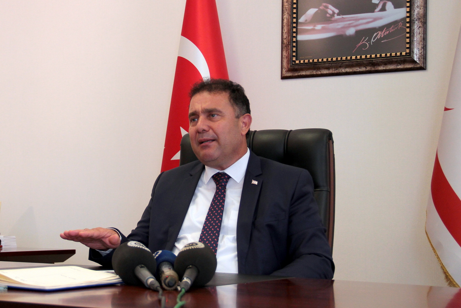 Başbakan Ersan Saner, Cumhurbaşkanı Ersin Tatar ve Türkiye ile birlikte iki eşit egemen devlet görüşüne tam destek verdiklerini de sözlerine ekledi.
