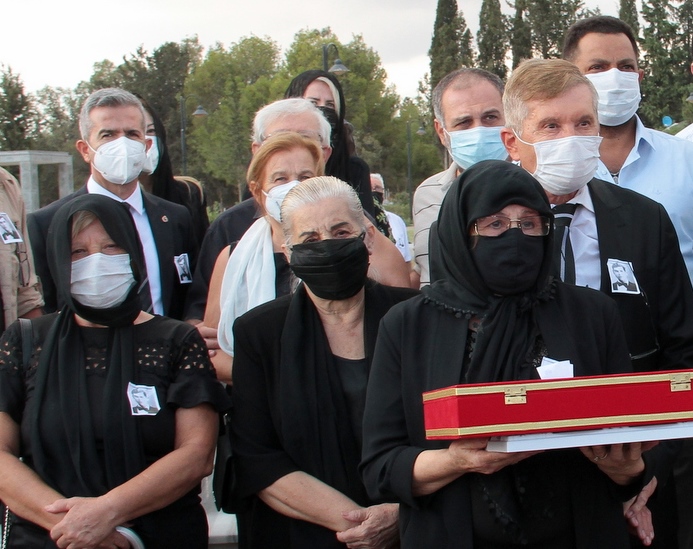 Burada gerçekleştirilen saygı atışının ardından, Gürsoy’un tabutunun sarılı olduğu bayraklar Cumhurbaşkanı Ersin Tatar tarafından kızı Naciye Direktör’e teslim edildi.