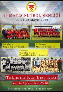 Vadili Türk Çiftçiler Birliği yönetim ile Vadili Belediyesi iş birliğinde organize edilen 19 Mayıs Futbol Şenliği, 20-21-22 Mayıs tarihleri arasında yapılıyor…Vadili 14 Ağustos Stadı’nda başlayacak olan şenlik, genç kızlar-erkekler, master erkekler ve yıldızlar karmaların katılımı ile üç gün sürecek…Etkinliğe,