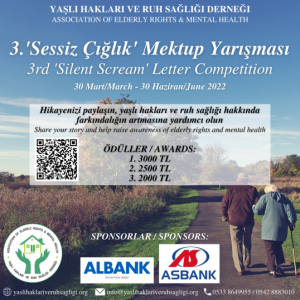 Yaşlı Hakları ve Ruh Sağlığı Derneği, “3. Sessiz Çığlık Mektup Yarışması” başvuru süresinin 30 Haziran’a kadar uzatıldığını bildirdi.