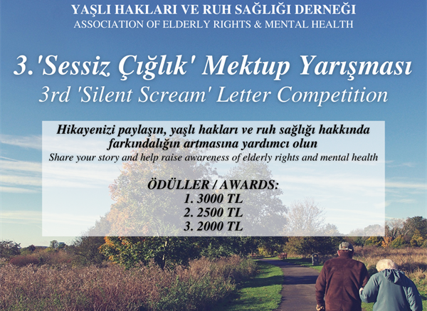 Yaşlı Hakları ve Ruh Sağlığı Derneği, “3. Sessiz Çığlık” mektup yarışmasına başvuruların bugün başladığını duyurdu.