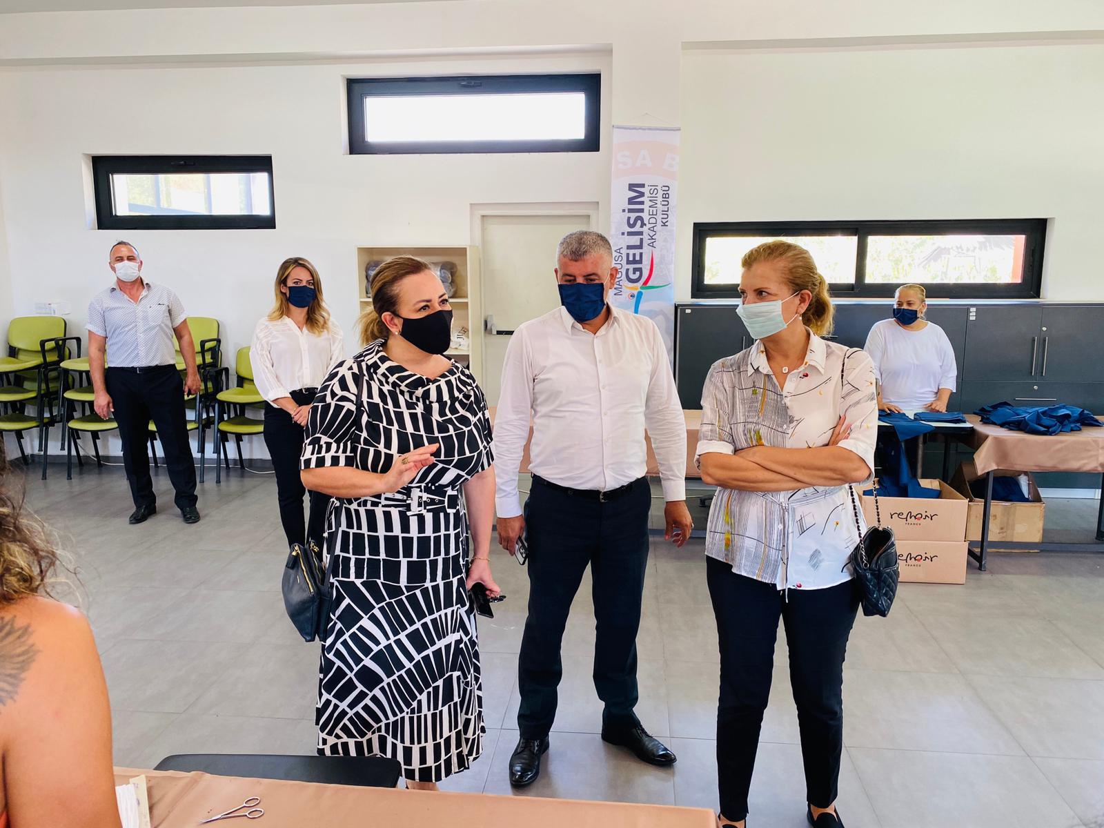 Sibel Tatar, Mağusa Gelişim Akademisi maske ve tulum üretim sürecini inceledi