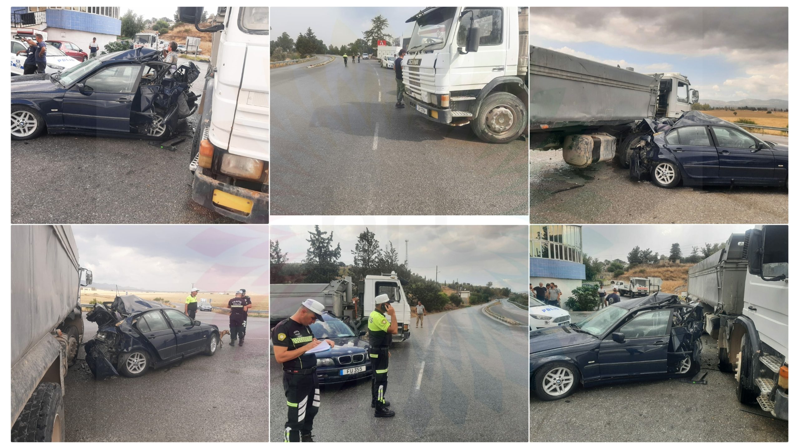 Polis Basın Subaylığı’ndan verilen bilgiye göre bugün saat 14:00 sıralarında, Sınırüstü’nde, Tatlı Market önlerinde, Eren OKUR(E-19) yönetimindeki FU 355 plakalı araç ile Ercan istikametine doğru seyrettiği sırada, dikkatsizliği sonucu direksiyon hakimiyetini kaybedip aracının kayması neticesinde, o esnada Sınırüstü kavşağında anayola çıkmak için beklemekte olan Zeynel Abidin YILMAZ(E-46) yönetimindeki GY 176 plakalı kamyon aracın sağ yan tekerleğine çarpmıştır.