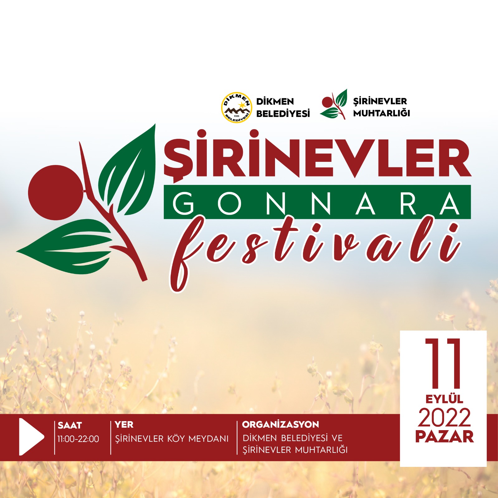 Dikmen Belediyesi’yle iş birliği içinde organizasyon için çalıştıklarını kaydeden Pilli, 11 Eylül Pazar günü 10.00’da başlayacak Gonnara Festivali’nde, bölgede çok yetişen ve sevilen bir meyve olan gonnaranın toplanıp satışa sunulacağını anlattı.