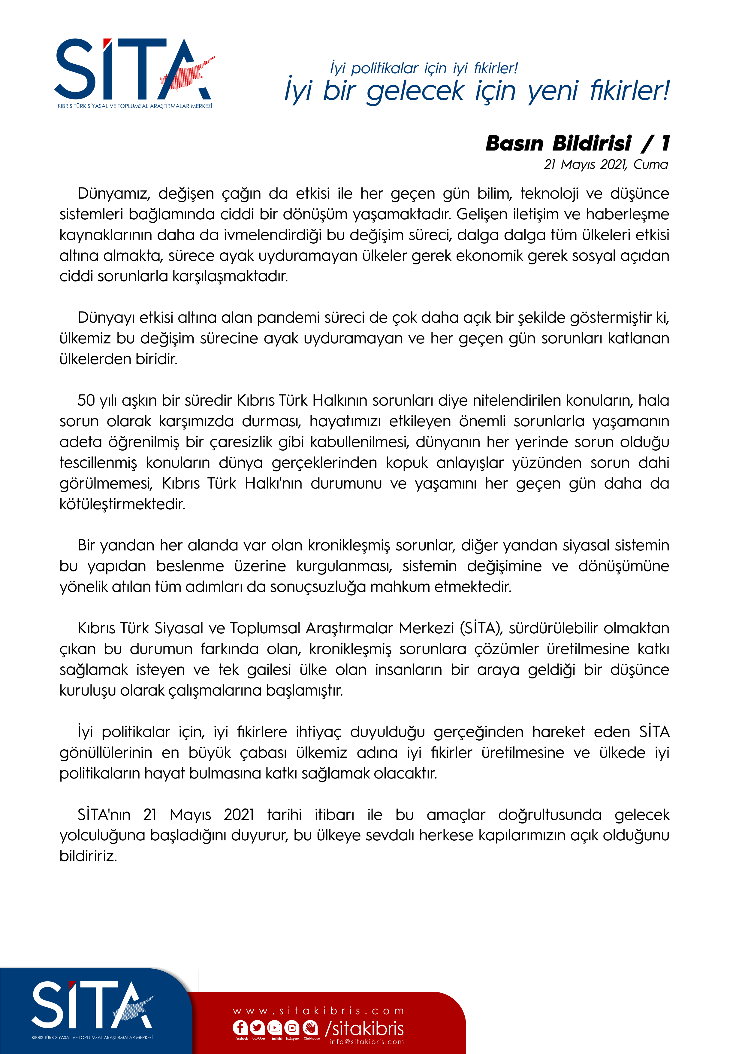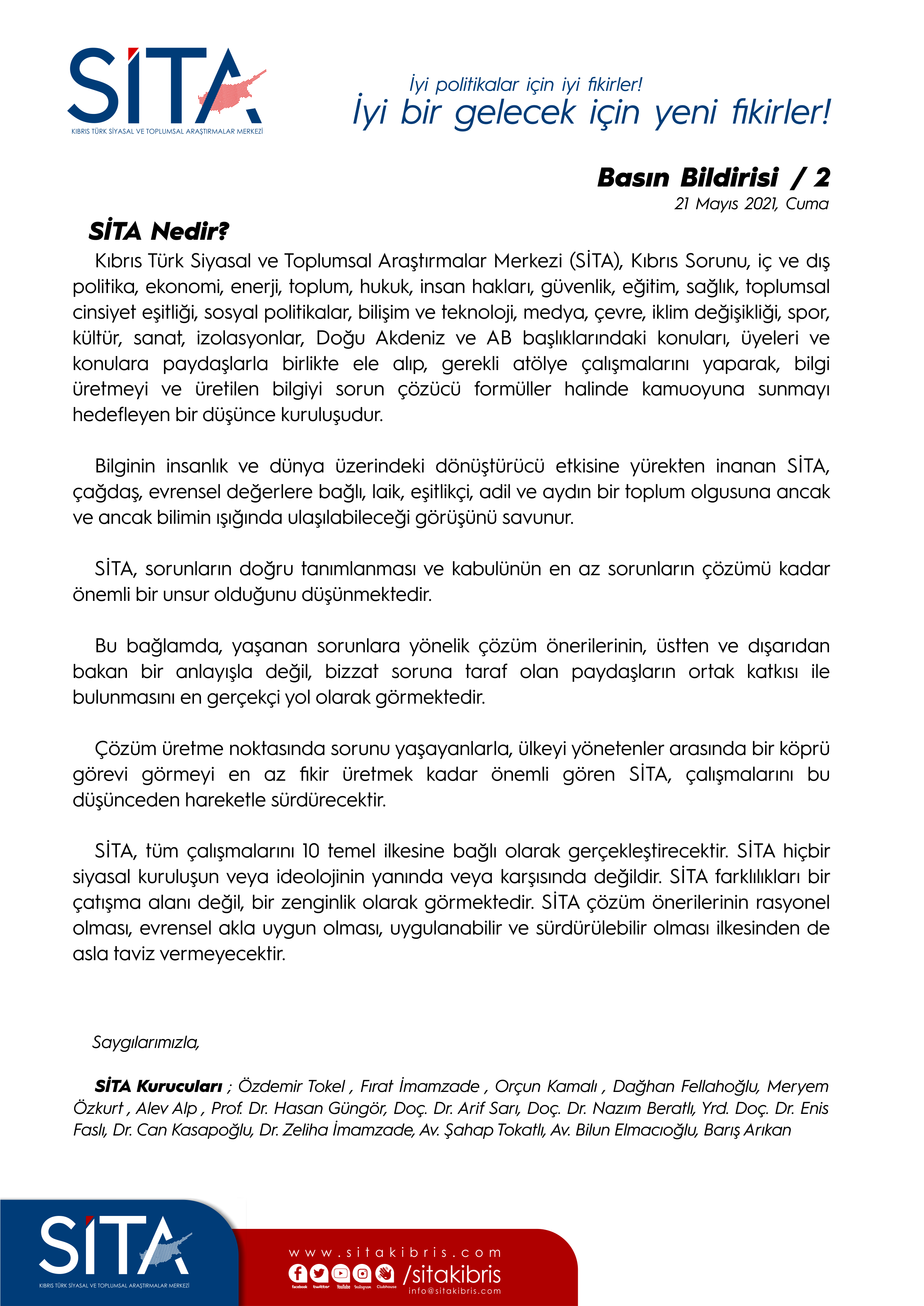 SİTA’nın 21 Mayıs 2021 tarihi itibarı ile bu amaçlar doğrultusunda gelecek yolculuğuna başladığını duyurur, bu ülkeye sevdalı herkese kapılarımızın açık olduğunu bildiririz.