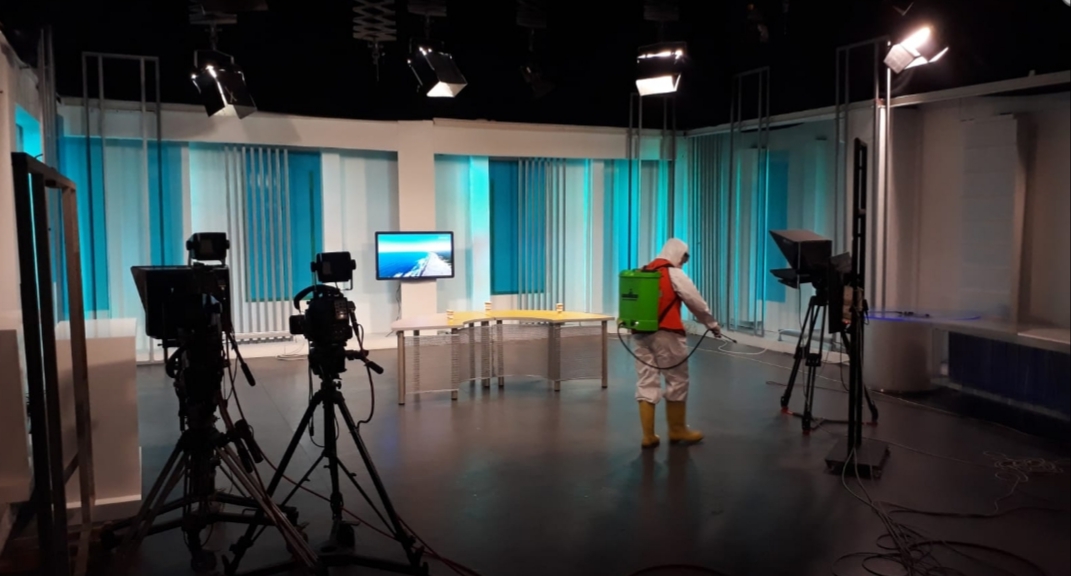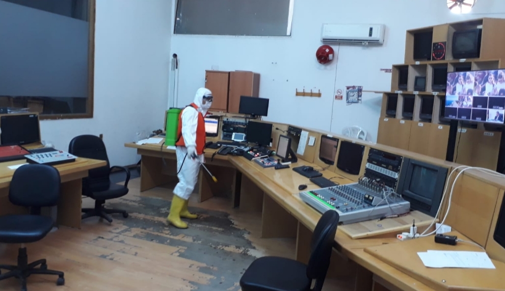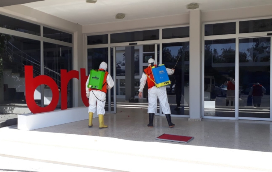 BRT binasının girişi ve binadaki tüm odalar, önlem olarak Sivil Savunma ekipleri tarafından dezenfekte edildi.