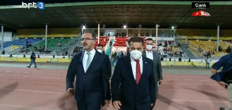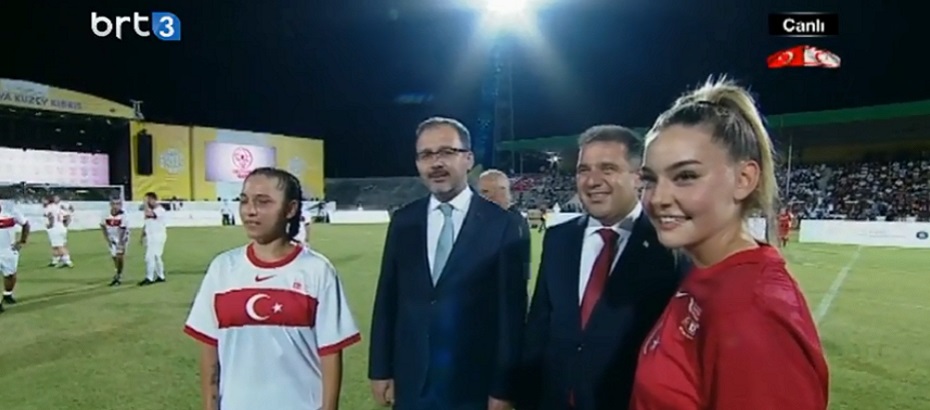 ‘Şöhretler Karması’ maçının başlama vuruşunu Başbakan Ersan Saner ve Türkiye Gençlik ve Spor Bakanı Mehmet Muharrem Kasapoğlu yaptı.