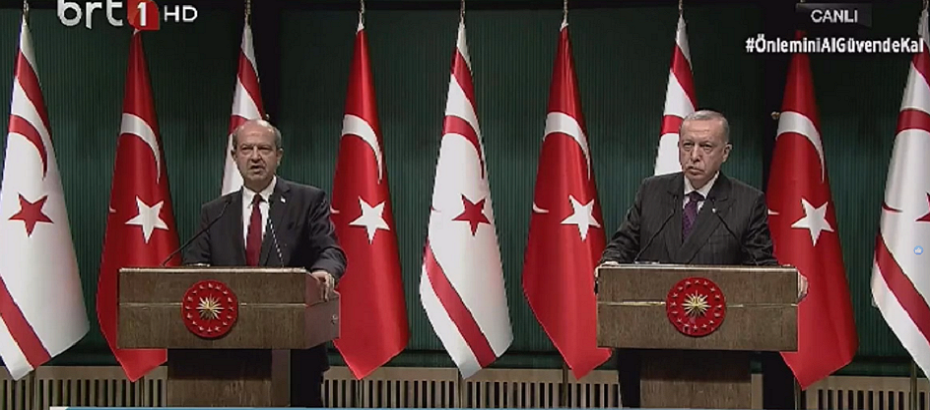"Bizim için Doğu Akdeniz meselesinin iki boyutu vardır, bunlardan birincisi Türkiye'nin kıta sahanlığındaki haklarının korunmasıdır, ikincisi de Kıbrıs Türk halkının adanın etrafındaki doğal kaynaklarla ilgili hak ve çıkarlarının garanti edilmesidir." diyen Erdoğan, Türkiye açısından bu iki boyutun da aynı öneme sahip olduğuna dikkat çekti.
