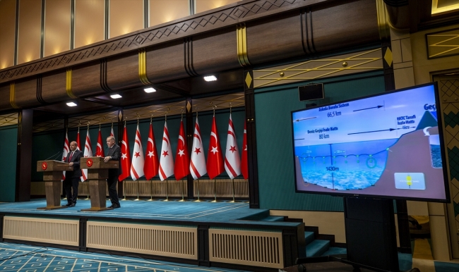 Dalgalı denizde, kolay olmayan bir çalışma yürütüldüğünü aktaran Erdoğan, hattın tamiratının kısa sürede bitirilip, suyun yeniden Kuzey Kıbrıs'a verildiğini dile getirdi.