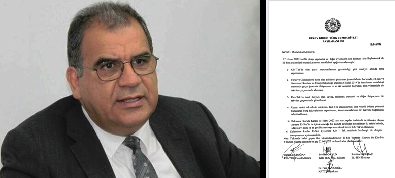 Başbakan, “Böyle bir ortamda iken, görüşmeler vesilesiyle, Kıb-Tek Yönetimi ile El-sen tarafından bir niyet metni hazırlanmıştır. Durumun aciliyeti ve enerji üretiminin durma noktasına gelmesi tehlikesi ve hükümetin uzlaşı arzusunu ortaya koymak için söz konusu metnin tarafımdan imzalanmasıyla eylem askıya alınmıştır. Metin, Kıbrıs Türk Elektrik Kurumu Yönetimi ile El-Sen arasında gün boyu devam eden müzakerelerin zeminini oluşturmuştur. Mutlulukla ifade edebilirim ki, Başbakan olarak benim tanıklığım ve onayımla Kıb-Tek Yönetimi ile El-Sen arasında bugün bir anlaşma imzalanmıştır. Niyet metni ile geçici olarak askıya alınan eylem bu anlaşma ile tamamen kaldırılmıştır” dedi.